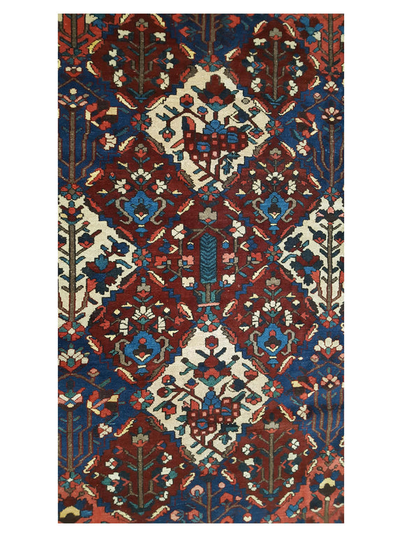This beautiful Semi Antique  Bakhtiyari rug is a true work of art. It was hand-knotted in Persia around 1950 and features stunning geometric patterns. This rug is unique to the Bakhtiyari tribe, who are renowned for their exceptional weaving skills. The rug is made of high quality materials and is sure to add a touch of luxury to any home.