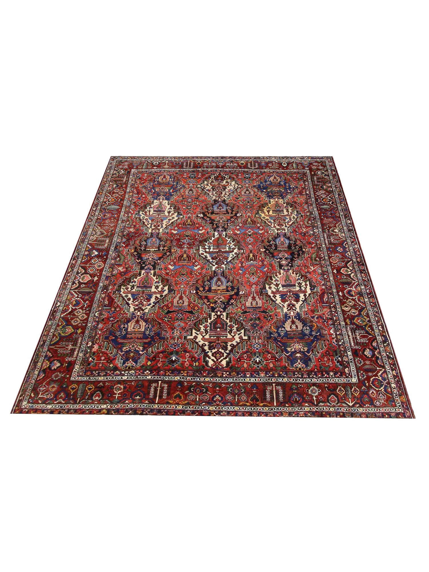 This beautiful Semi Antique Bakhtiyari rug is a true work of art. It was hand-knotted in Persia around 1950 and features stunning geometric patterns. This rug is unique to the Bakhtiyari tribe, who are renowned for their exceptional weaving skills. The rug is made of high quality materials and is sure to add a touch of luxury to any home.
