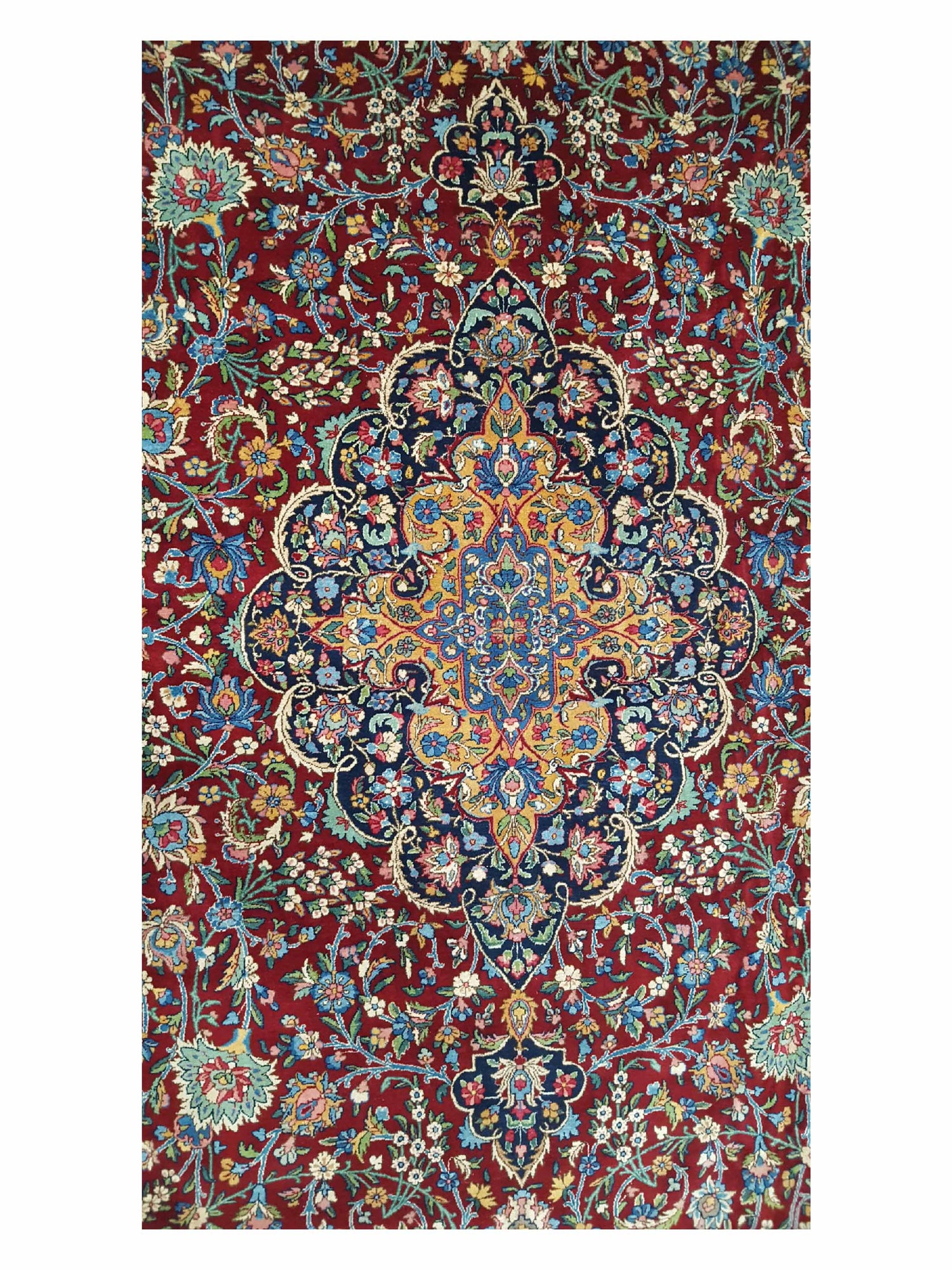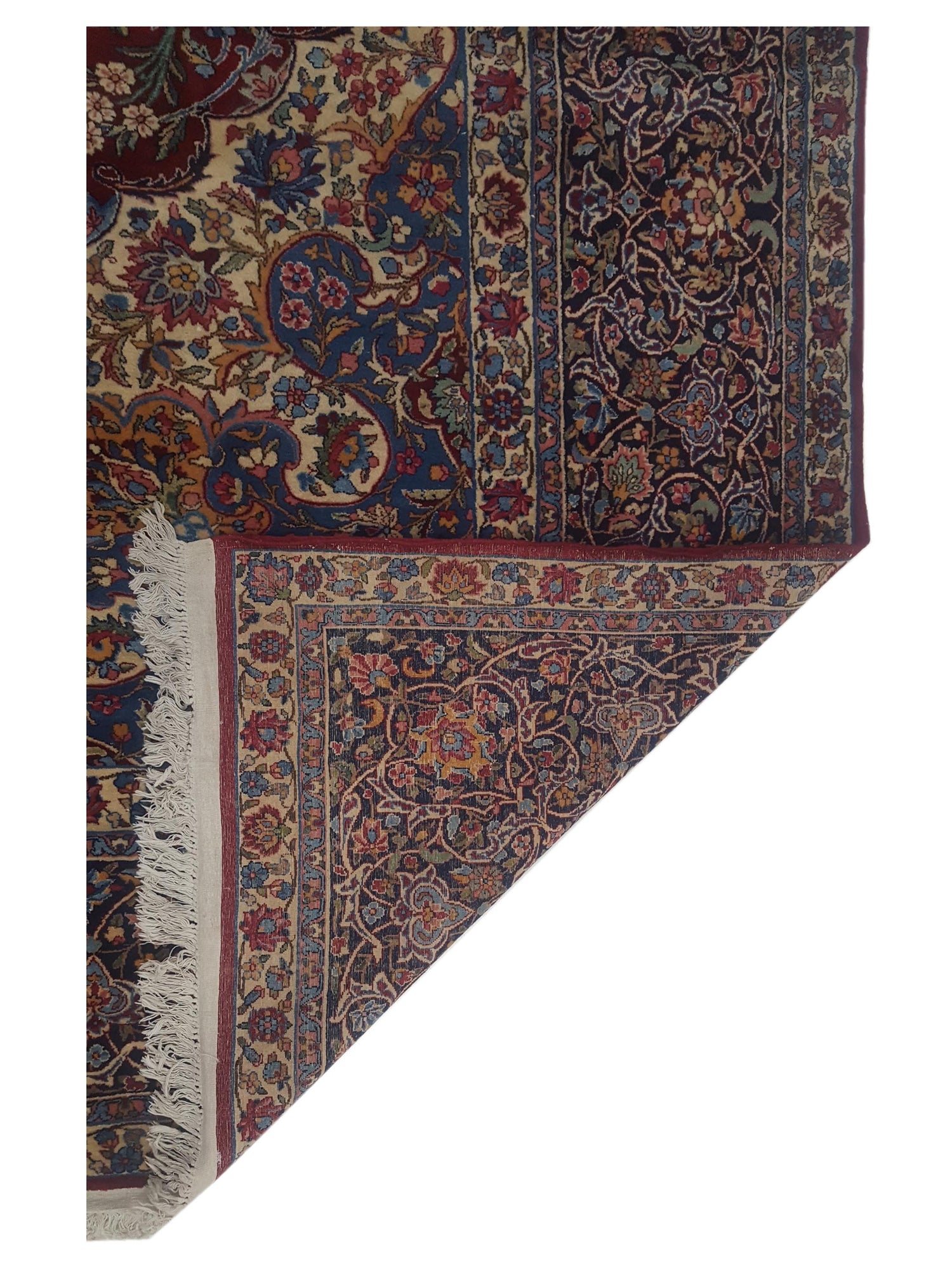 The Kerman is a hand knot persian rug made from fine weave Wool. Often called the "Queen of Persian Rugs", this magnificent piece was created in the South East of Persia. Its intricate design and beautiful colors will add a touch of luxury to any home.