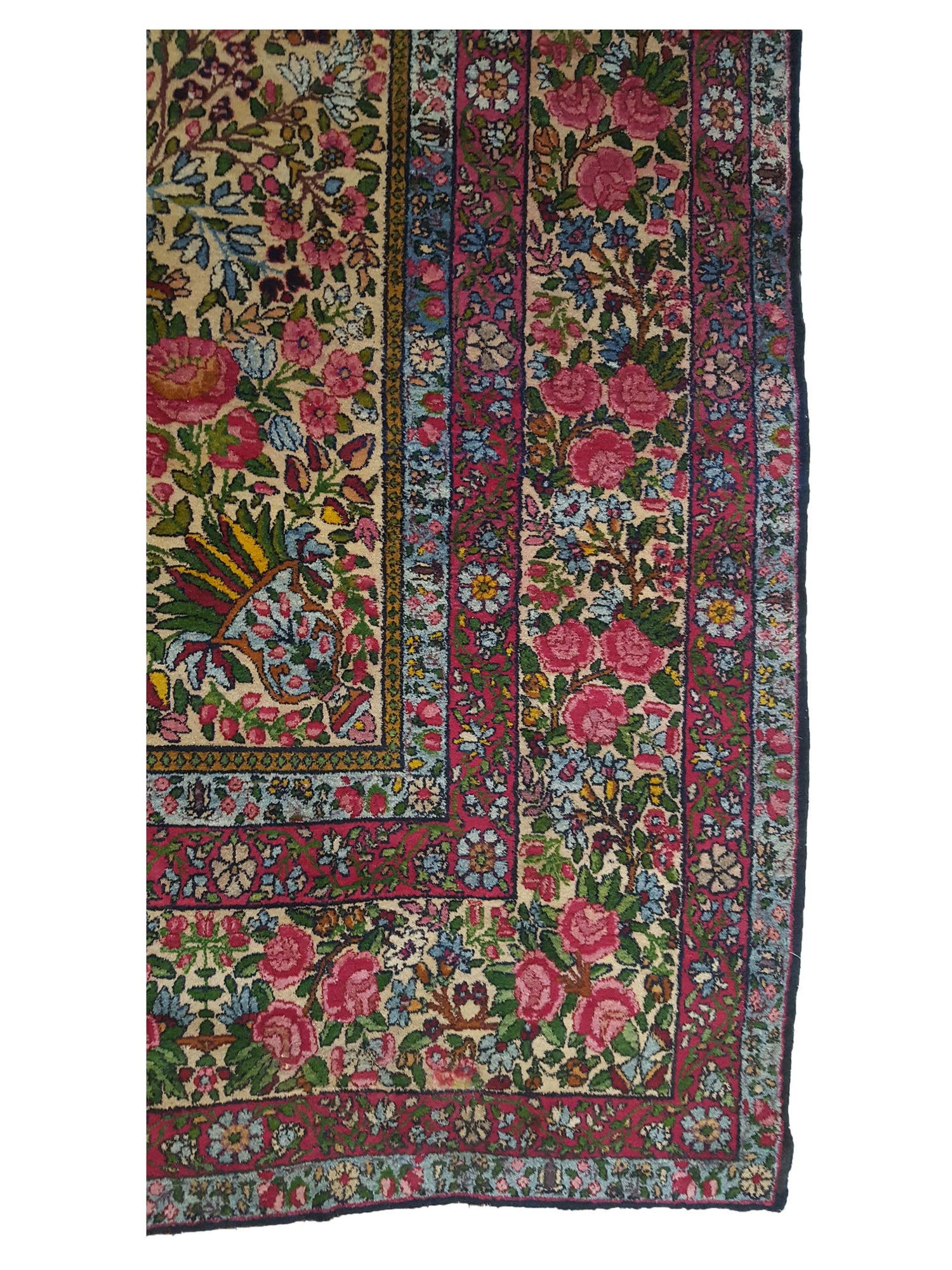 The Kerman is a hand knot persian rug made from fine weave Wool. Often called the "Queen of Persian Rugs", this magnificent piece was created in the South East of Persia. Its intricate design and beautiful colors will add a touch of luxury to any home.