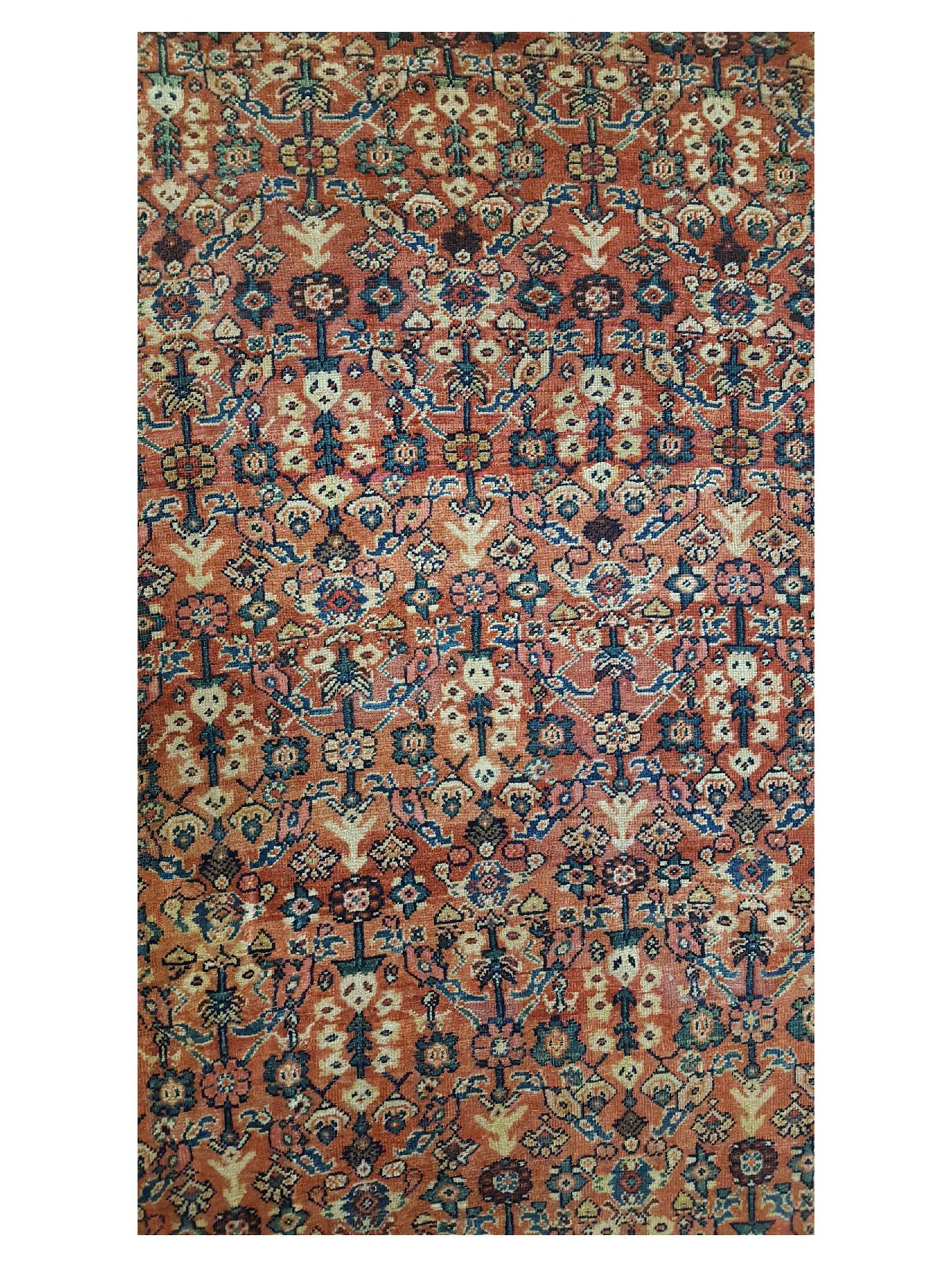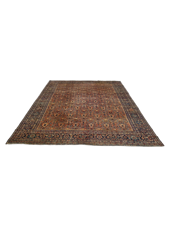 Antique Mahal rugs, also known as Sultanabad rugs, are a type of Persian carpet that originated in the city of Mahala or Sultanabad, located in the western part of Iran. These rugs are highly regarded for their exquisite craftsmanship, unique designs, and historical significance. Mahal rugs were produced in the late 19th and early 20th centuries, during a time when Persian rug production was undergoing significant changes due to increased demand from Western markets. These rugs were specifically woven to cater to Western tastes, featuring larger scales, simpler designs, and softer color palettes compared to more traditional Persian rug styles. Antique Mahal rugs often exhibit a distinctive aesthetic characterized by spacious designs, floral motifs, and muted color schemes. They are typically hand-knotted using high-quality wool on a cotton foundation, resulting in durable and long-lasting carpets. What sets Antique Mahal rugs apart is their ability to seamlessly blend traditional Persian weaving techniques with contemporary design elements, making them versatile pieces that can complement a wide range of interior styles. Today, Antique Mahal rugs are highly sought after by collectors, interior designers, and rug enthusiasts for their beauty, craftsmanship, historical value of these classic designs of these timeless Rugs.