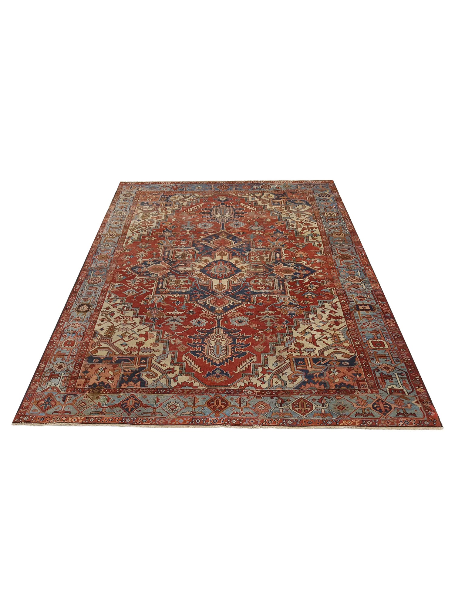 Persian rugs are famous the world over for their unique and distinguishable style. Most of Rugs named on cities or Villages of Persia,Serapi,s are woven in north west of Persia in Heriz Region , where they originate, are perhaps some of the most well-known. These oversized geometric medallions, crisply delineated against a rich red, rust,Ivory or dark blue field, are unmistakable and make a bold statement in any room. Often featuring an all-over layout and intricate geometric floral motives, these Serapi rugs are sure to add distinction and character to any room.