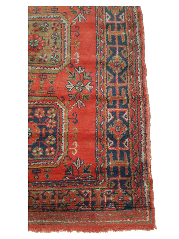 Ushak rugs are a type of Turkish rug originating from the region of Usak in western Anatolia, Turkey. They are renowned for their unique designs, high-quality craftsmanship, and rich history. Ushak rugs typically feature large-scale geometric or floral motifs in warm, earthy tones such as red, blue, gold, and beige. When referring to an "antique Ushak," it could indicate a rug produced in the Usak region several decades or even centuries ago. Antique Ushak rugs are highly prized by collectors and enthusiasts for their beauty, craftsmanship, and historical significance. They often exhibit a level of patina and wear that adds to their character and charm. Collectors and buyers of antique Ushak rugs should be aware of factors such as age and condition when evaluating their value and authenticity. Due to their age and rarity, antique Ushak rugs can command high prices in the market for fine oriental carpets and textiles.