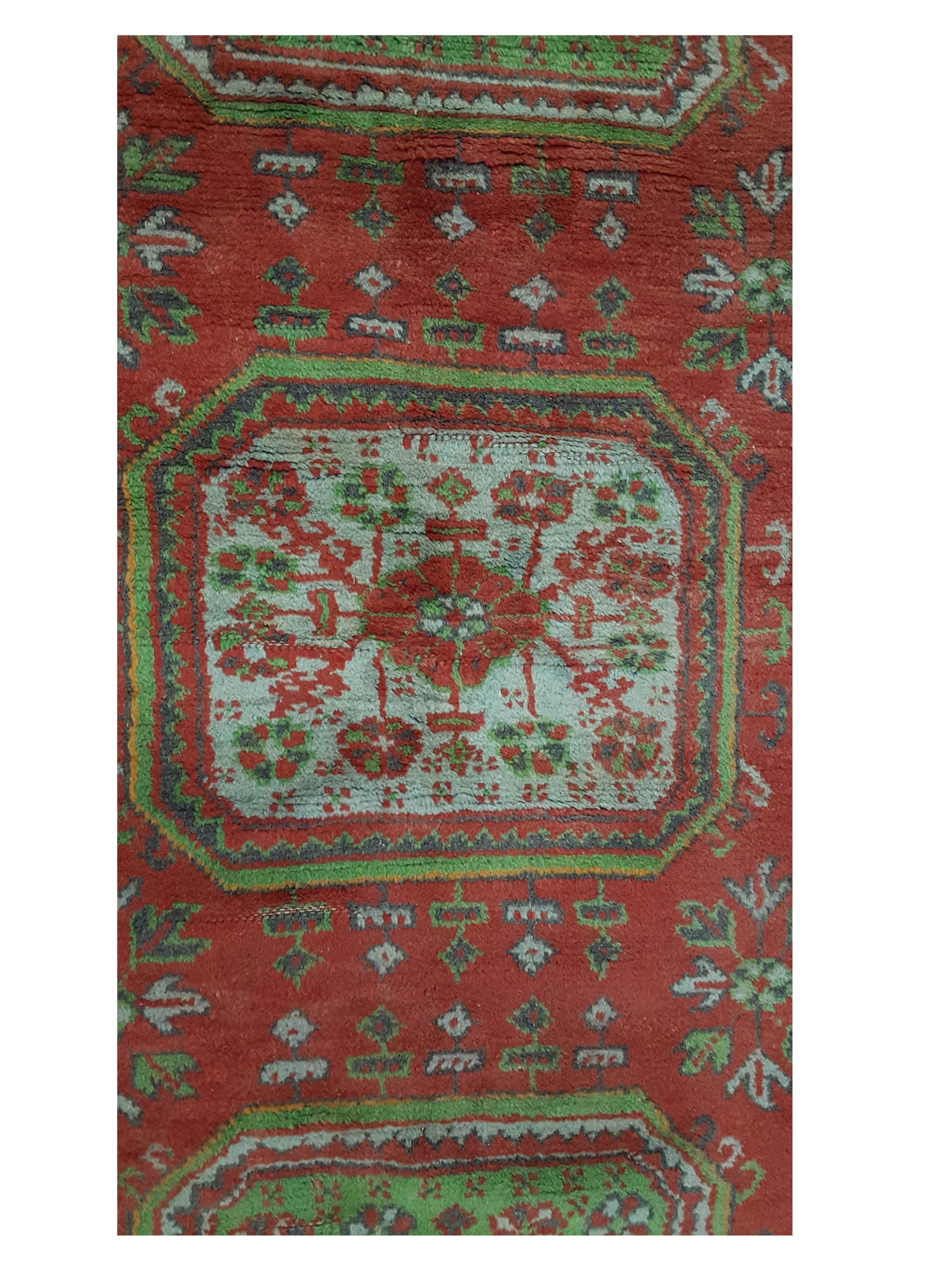 Ushak rugs are a type of Turkish rug originating from the region of Usak in western Anatolia, Turkey. They are renowned for their unique designs, high-quality craftsmanship, and rich history. Ushak rugs typically feature large-scale geometric or floral motifs in warm, earthy tones such as red, blue, gold, and beige. When referring to an "antique Ushak," it could indicate a rug produced in the Usak region several decades or even centuries ago. Antique Ushak rugs are highly prized by collectors and enthusiasts for their beauty, craftsmanship, and historical significance. They often exhibit a level of patina and wear that adds to their character and charm. Collectors and buyers of antique Ushak rugs should be aware of factors such as age and condition when evaluating their value and authenticity. Due to their age and rarity, antique Ushak rugs can command high prices in the market for fine oriental carpets and textiles.