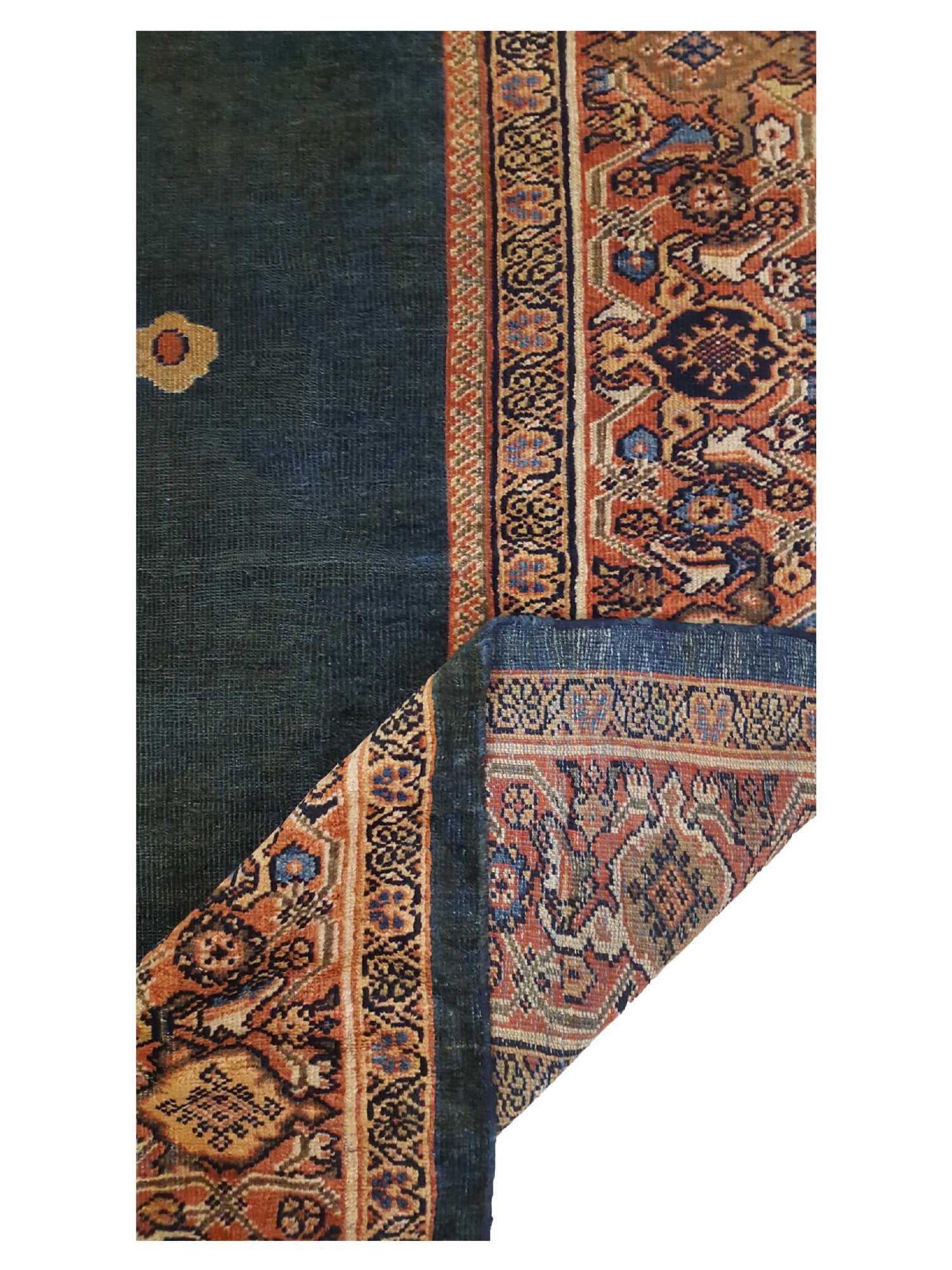 Antique Ziegler rugs are characterized by their unique blend of traditional Persian motifs and Western-inspired designs. They often feature large-scale floral patterns, palmettes, vines, and scrolling arabesques, combined with softer, muted colors.