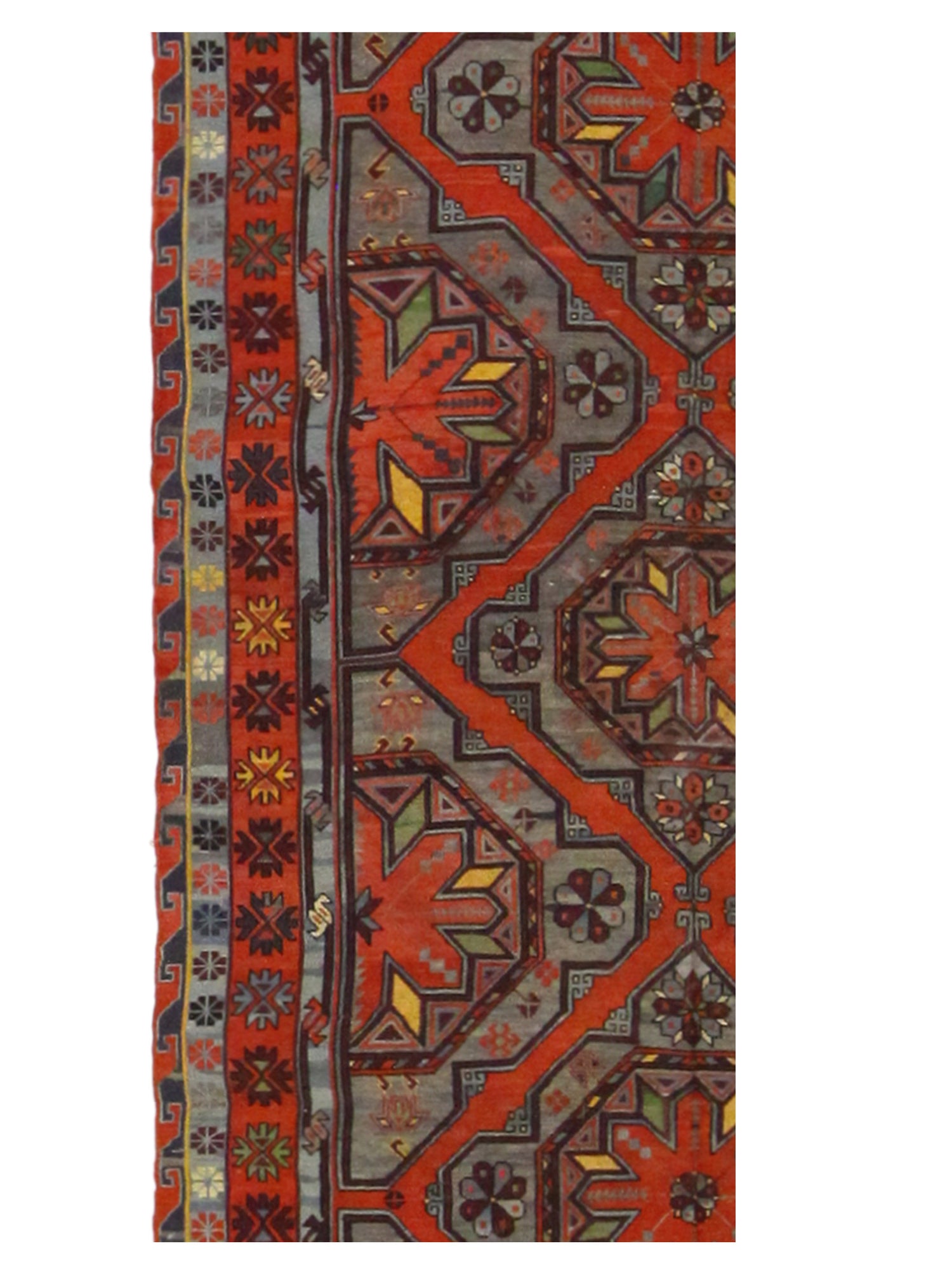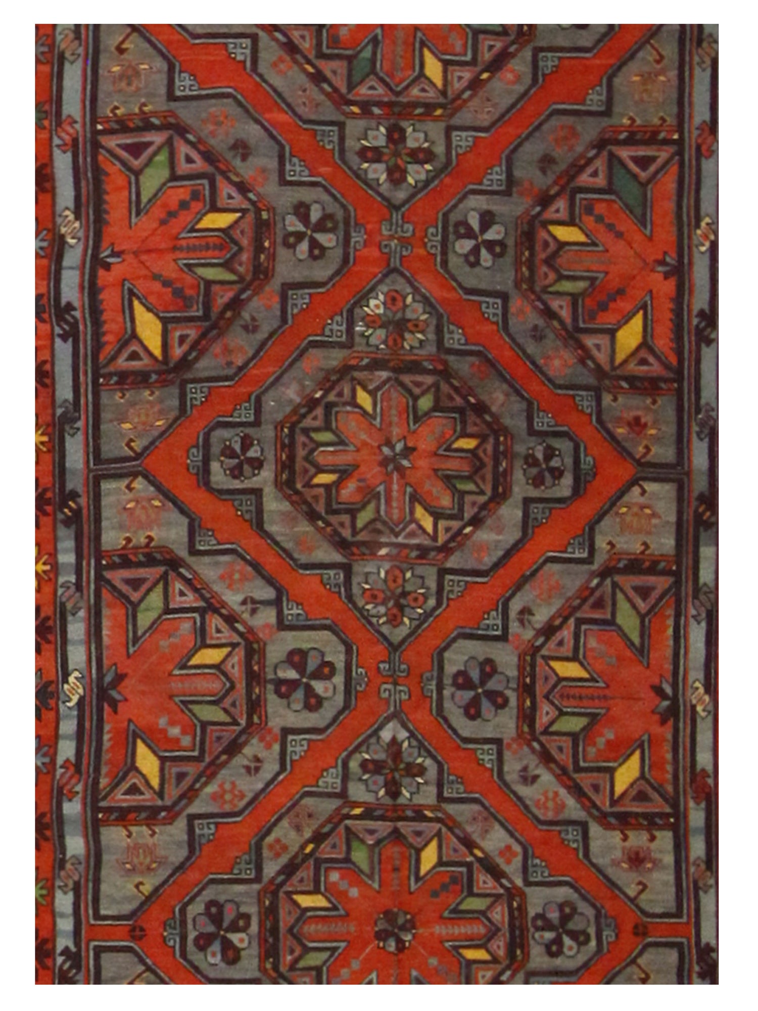 One of Kind the Summak rug, hand-woven in Uzbekistan from the finest quality wool. This rug is unique, with its vibrant colors and geometric design. It is sure to add a touch of luxury to any home. The Summak rug is perfect for any room, whether you are looking for a focal point for your living room or an accent piece for your bedroom. With its rich colors and intricate design, the Summak rug is sure to make a statement in any home.