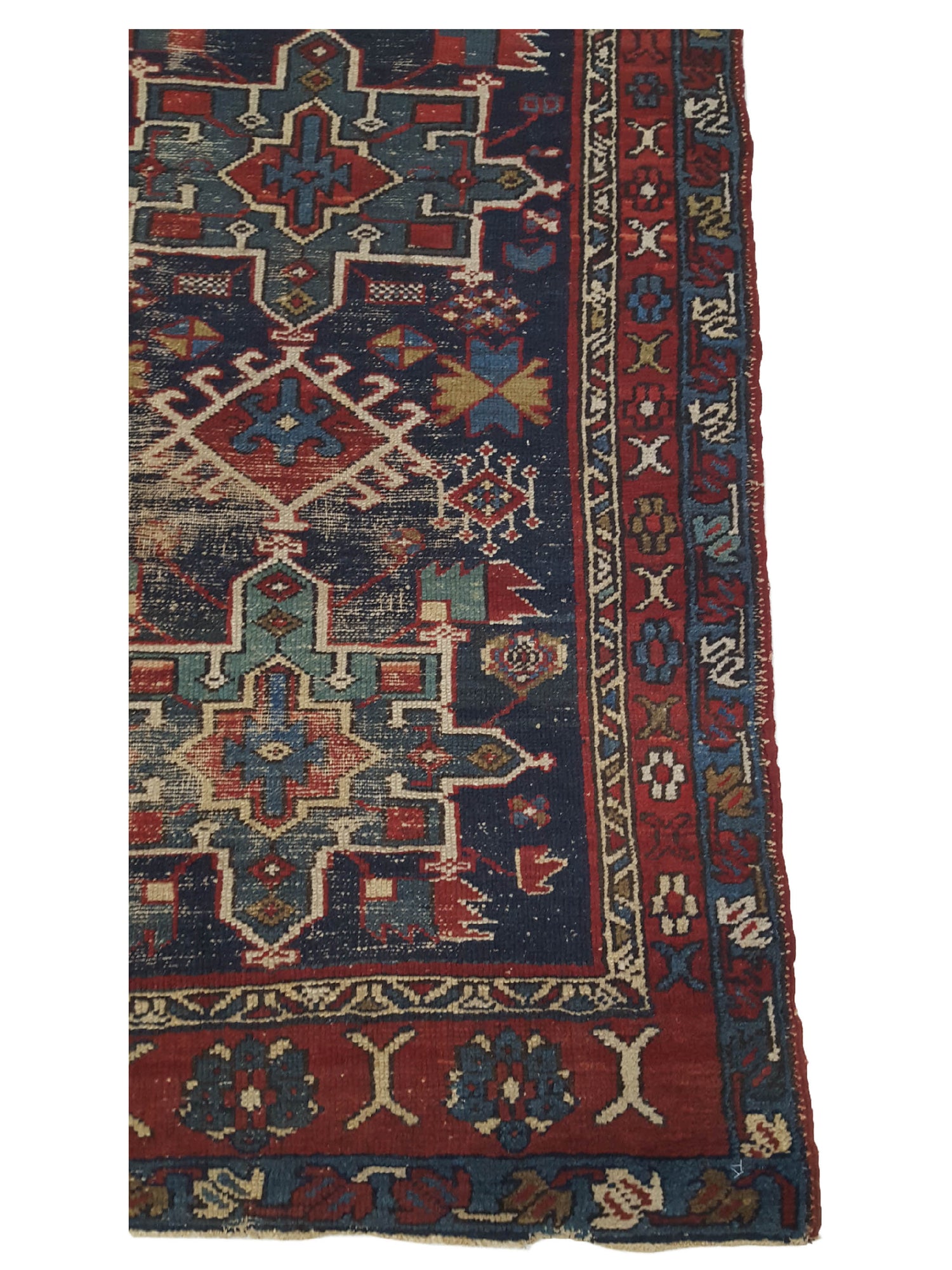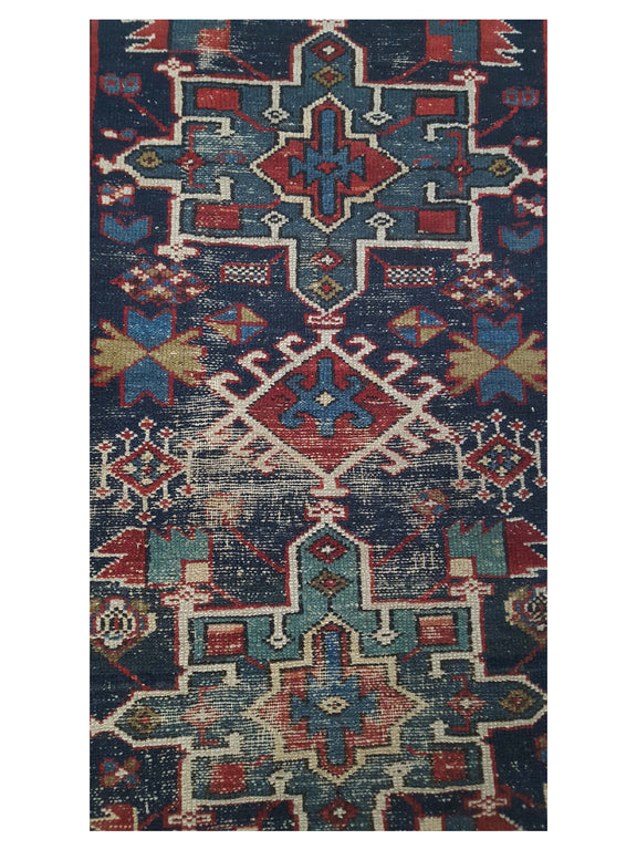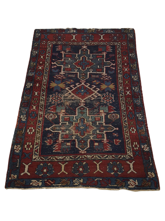 The Karajah is small villiage in north western part of Iran this area make unique small motifs tribal rugs there dominating colors are dark reds orange greens and accents of ivory.