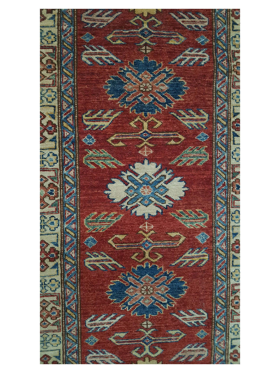 Kazak Super are true hand knotted oriental rugs, originally made in Afghanistan. These rugs are made by Afghani people who still follow the ancient weaving techniques and regularly practice hand knotted works and these works are performed by women of these region. The high mountain wool are used in our colorful Khurgeen and they are finished with natural and vegetable dyes.