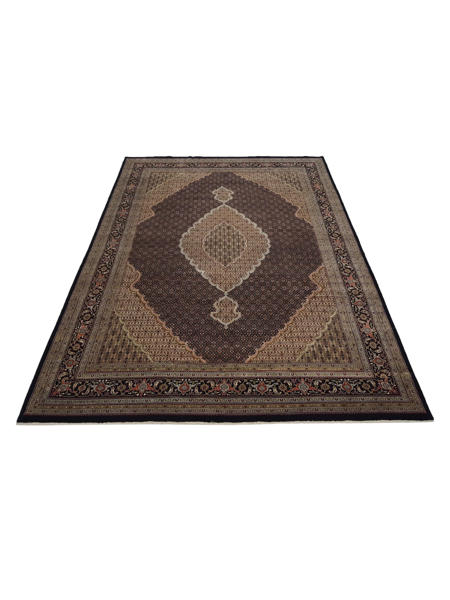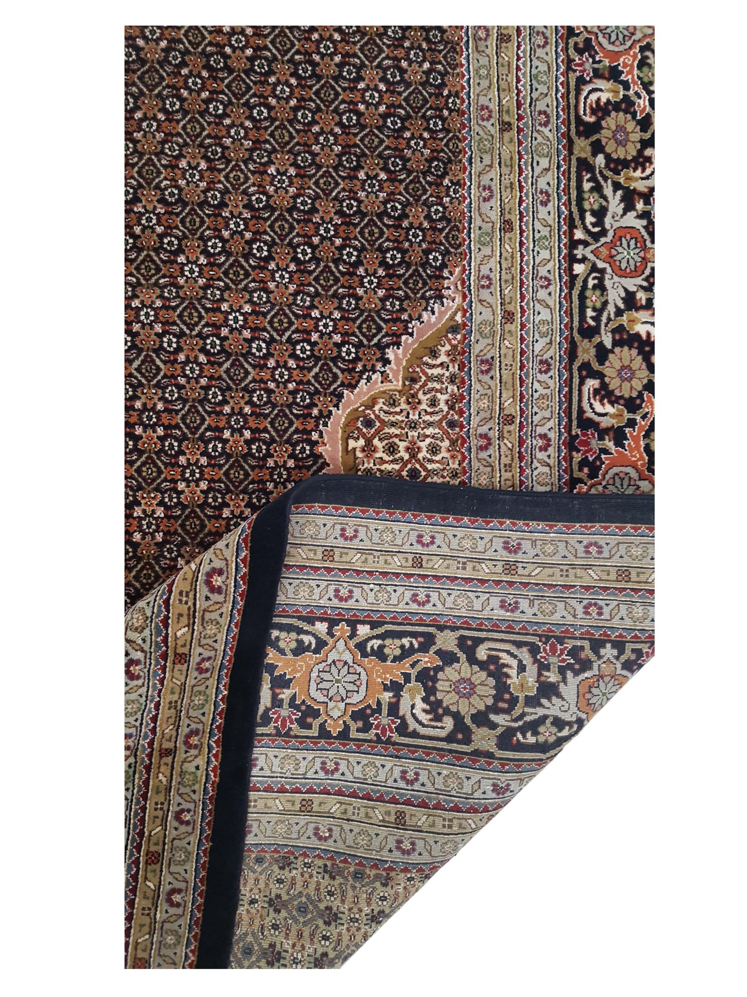 Mahi Bijar are Hand Knotted with double-knot with high quality of life and durability. The carpet is thick, very tight and is heavy with excellent wool quality. The antique pattern and traditional colors used in these rugs makes them very easy to place.