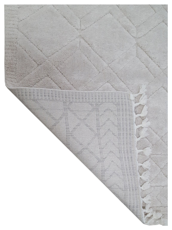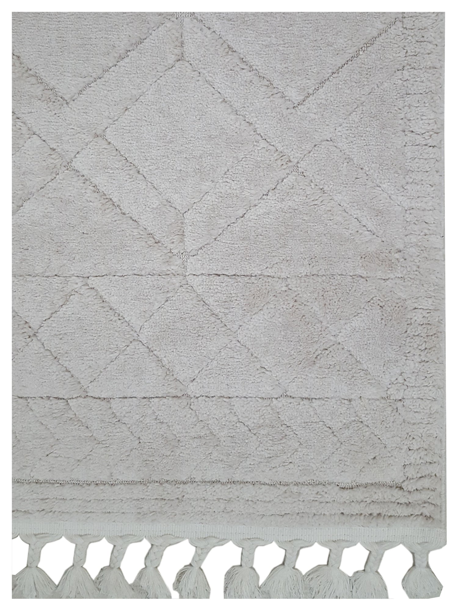 The Moroccan Customer’s Favorite rug, soft and dense pile has a High and Low pattern, unique texture and braided fringes along the short sides. With its stylish off white color, it fits into all rooms of the home. Fits perfectly in the bedroom, living room or dining room, Give your home a more cozy feeling while providing your floor with a warming and soft surface.