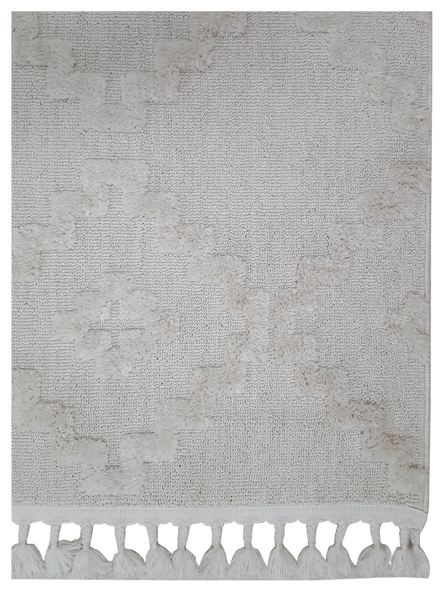 The Moroccan Customer’s Favorite rug, soft and dense pile has a High and Low pattern, unique texture and braided fringes along the short sides. With its stylish off white color, it fits into all rooms of the home. Fits perfectly in the bedroom, living room or dining room, Give your home a more cozy feeling while providing your floor with a warming and soft surface.