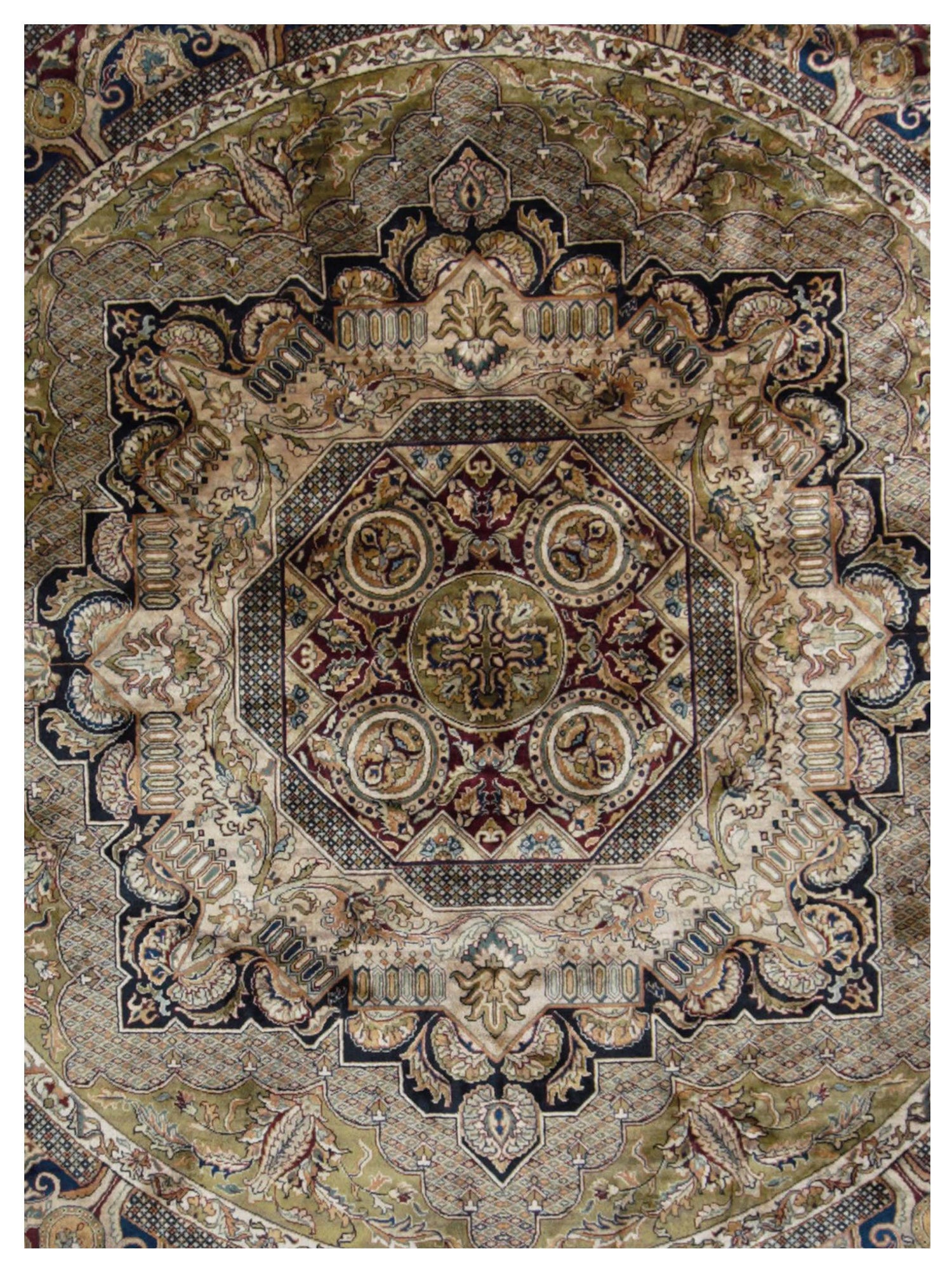 This exquisite piece is Hand Knotted in India, in the style of the Mughal emperors. It's crafted from 100% wool and features beautiful patterns and colors that will make any room feel like a palace.