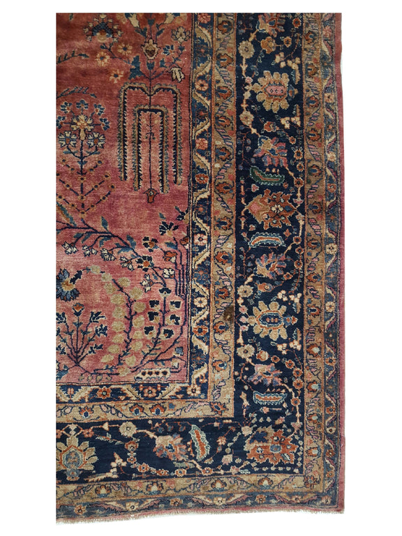 The beautiful Sarouk rug is hand-knotted in Persia from the finest wool. It features rich, vibrant colors that will add a touch of luxury to any room. The durable construction and antique design make this rug a timeless investment that will be enjoyed for generations.