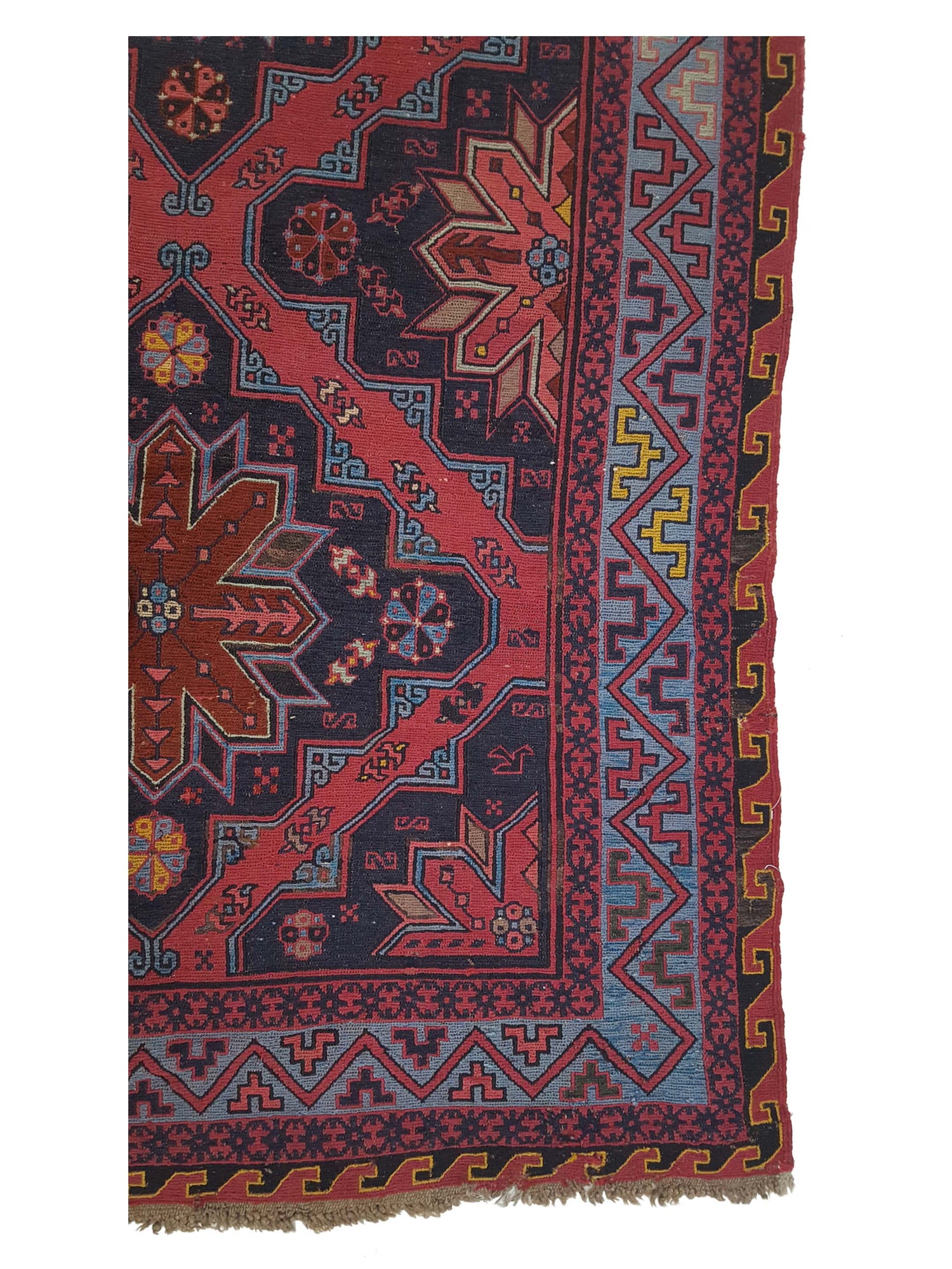 One of Kind the Summak rug, hand-woven in Uzbekistan from the finest quality wool. This rug is unique, with its vibrant colors and geometric design. It is sure to add a touch of luxury to any home. The Summak rug is perfect for any room, whether you are looking for a focal point for your living room or an accent piece for your bedroom. With its rich colors and intricate design, the Summak rug is sure to make a statement in any home.