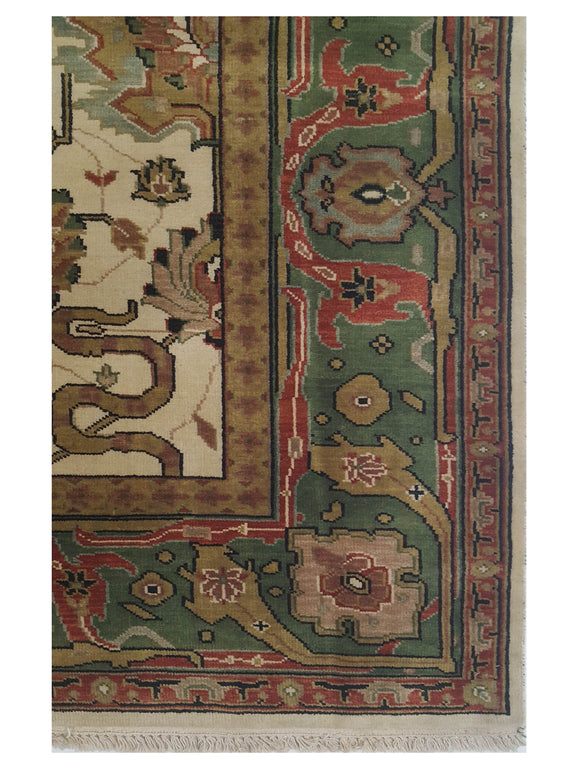 Pacific Tribal 34363 Ivory Green Traditional Hand Knotted Rug