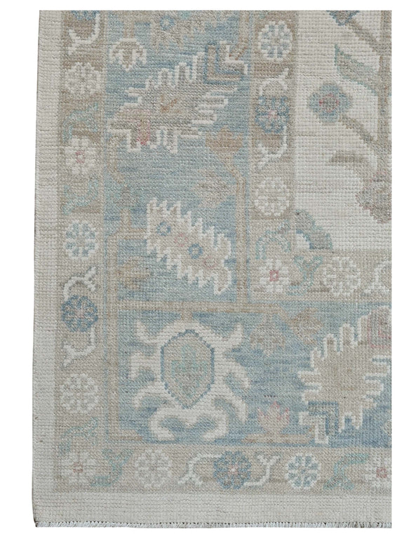 Pacific Ushak 43605 Ivory Sky Blue Transitional Hand Knotted Rug
