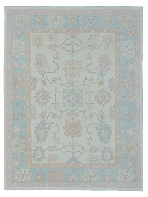 Pacific Ushak 43712 Ivory Sky Blue Transitional Hand Knotted Rug