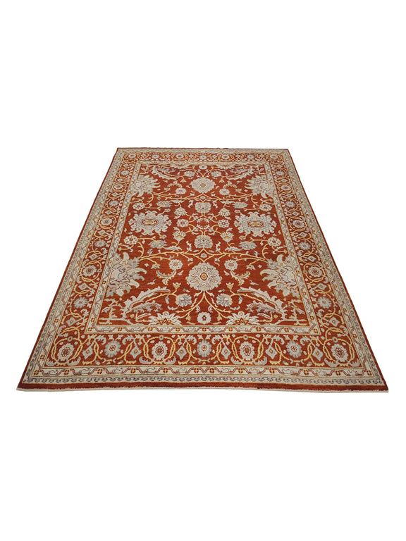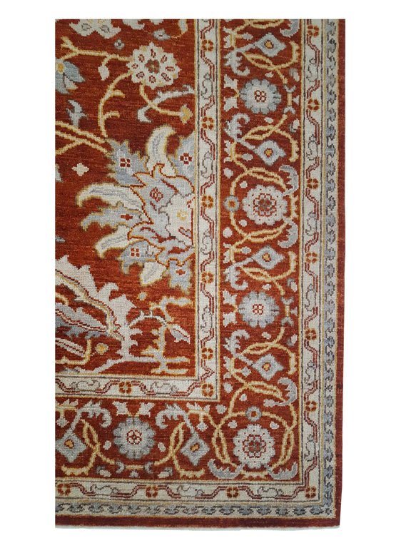 Pacific Ushak Wool Weft 17027 Dk.Orange Ivory Transitional Hand Knotted Rug