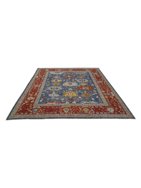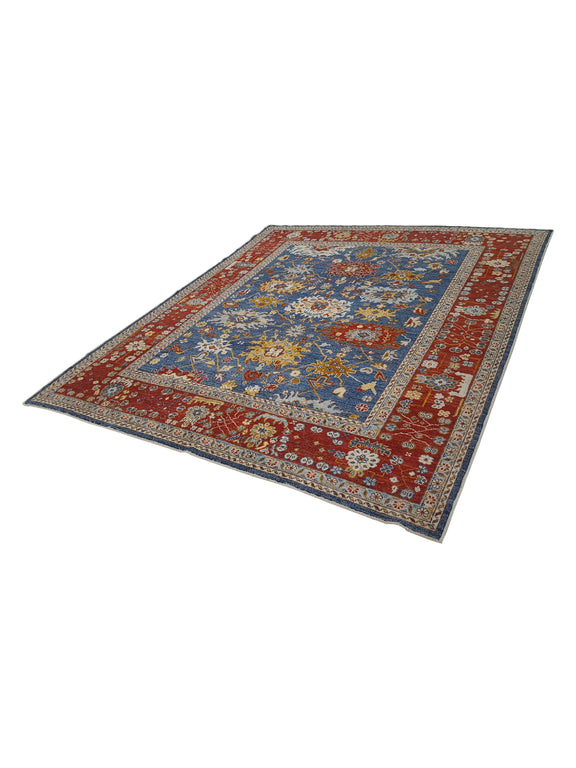 Pacific Ushak Wool Weft 17028 Blue Red Transitional Hand Knotted Rug