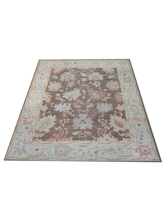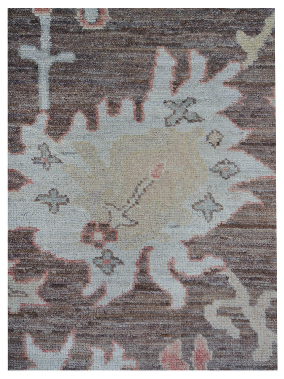 Pacific Ushak Wool Weft 42455 Chocolate Bone Transitional Hand Knotted Rug