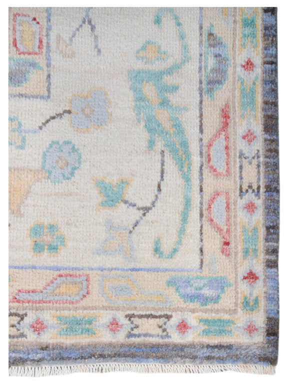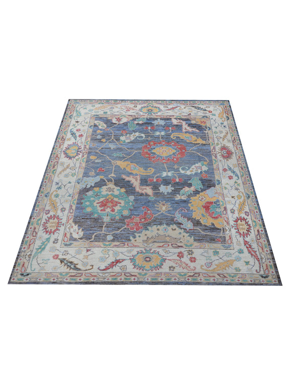 Pacific Ushak Wool Weft 42466 Blue Ivory Transitional Hand Knotted Rug