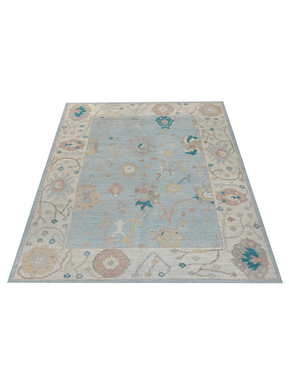Pacific Ushak Wool Weft 42467 Turquoise Ivory Transitional Hand Knotted Rug