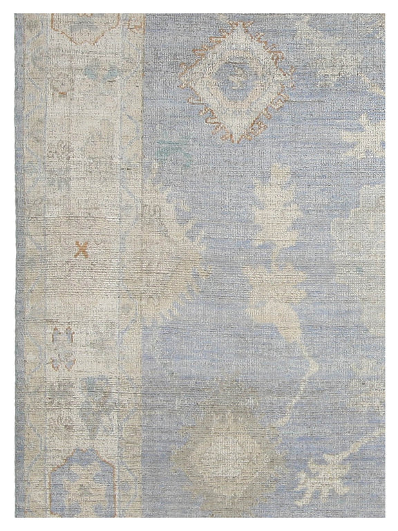 Pacific Ushak Wool Weft 42502 Blue Beige Transitional Hand Knotted Rug