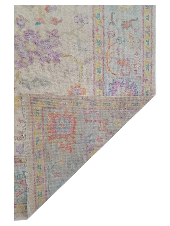 Pacific Ushak Wool Weft 42590 Ivory Lt.Blue Transitional Hand Knotted Rug