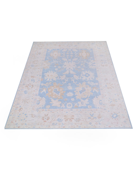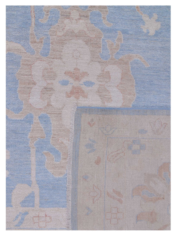 Pacific Ushak Wool Weft 42760 Blue Ivory Transitional Hand Knotted Rug