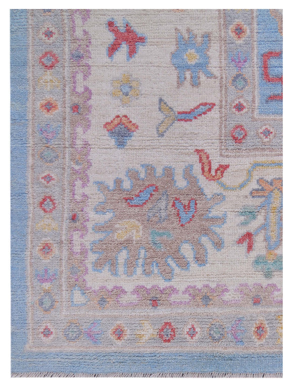 Pacific Ushak Wool Weft 42797 Blue Ivory Transitional Hand Knotted Rug