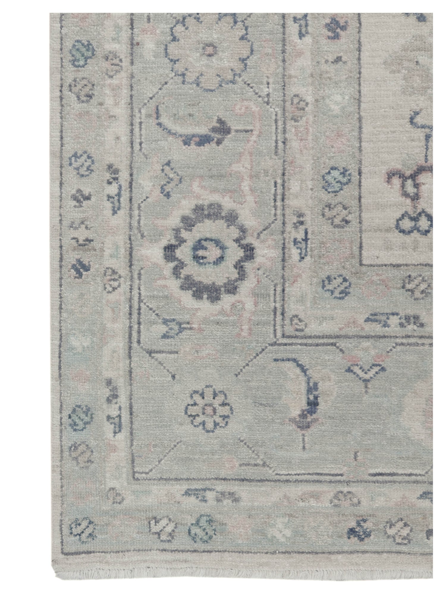 Pacific Ushak Wool Weft 43446 Ivory Lt.Grey Transitional Hand Knotted Rug