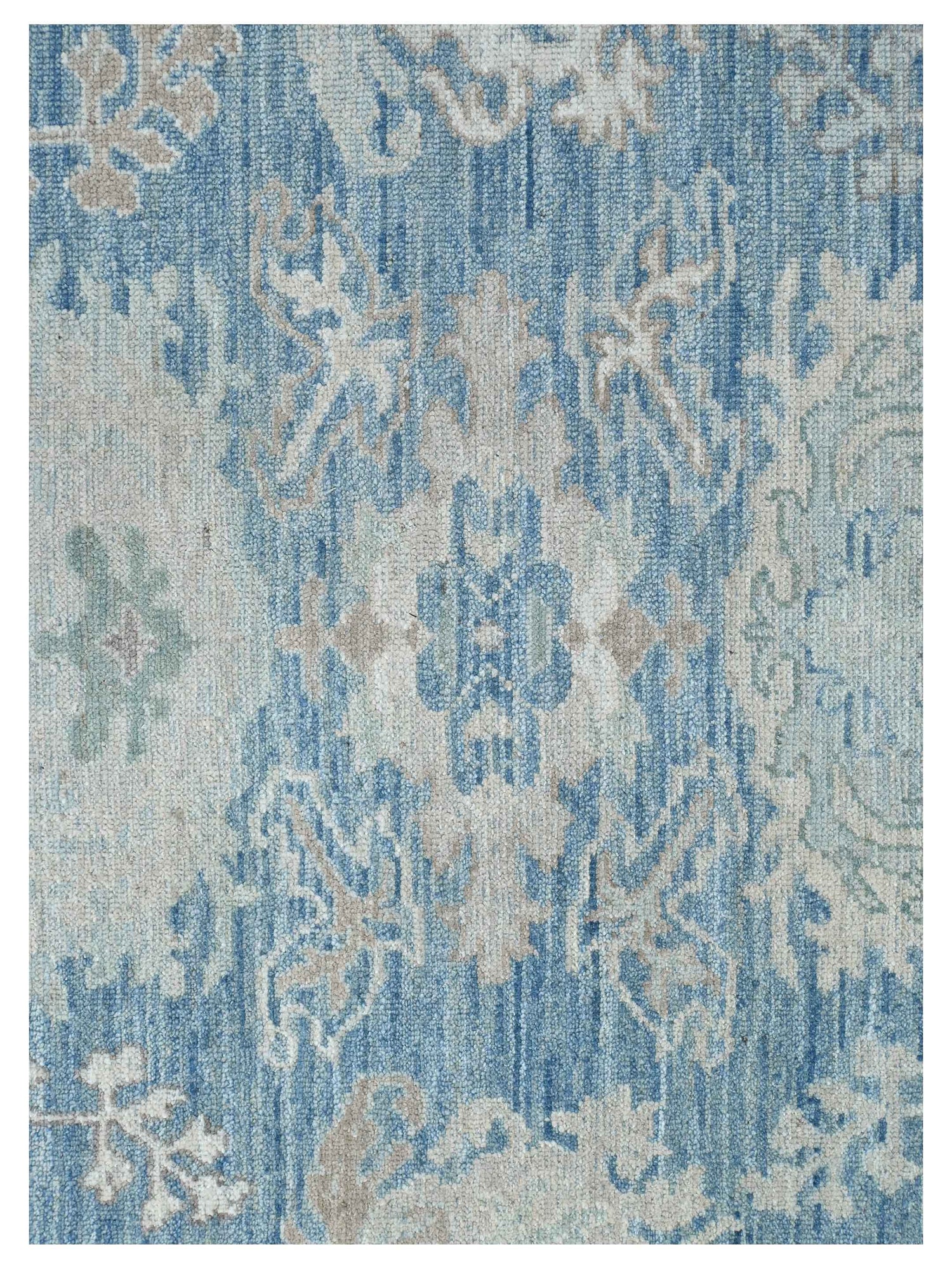 Pacific Ushak Wool Weft 43637 Blue Ivory Transitional Hand Knotted Rug