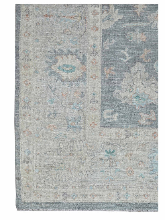 Pacific Ushak Wool Weft 43639 Grey Ivory Transitional Hand Knotted Rug