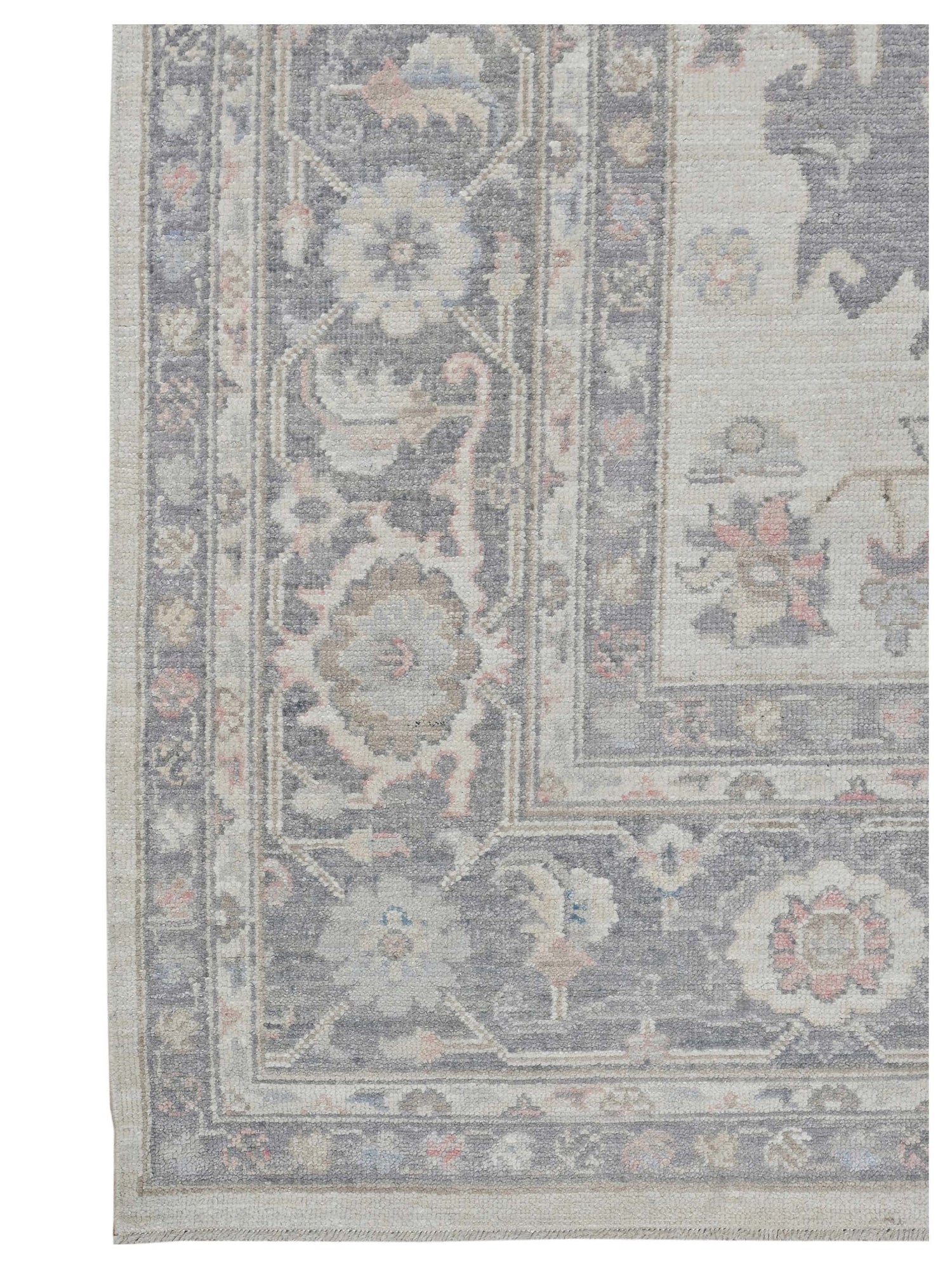 Pacific Ushak Wool Weft 43646 Ivory Lt.Grey Transitional Hand Knotted Rug