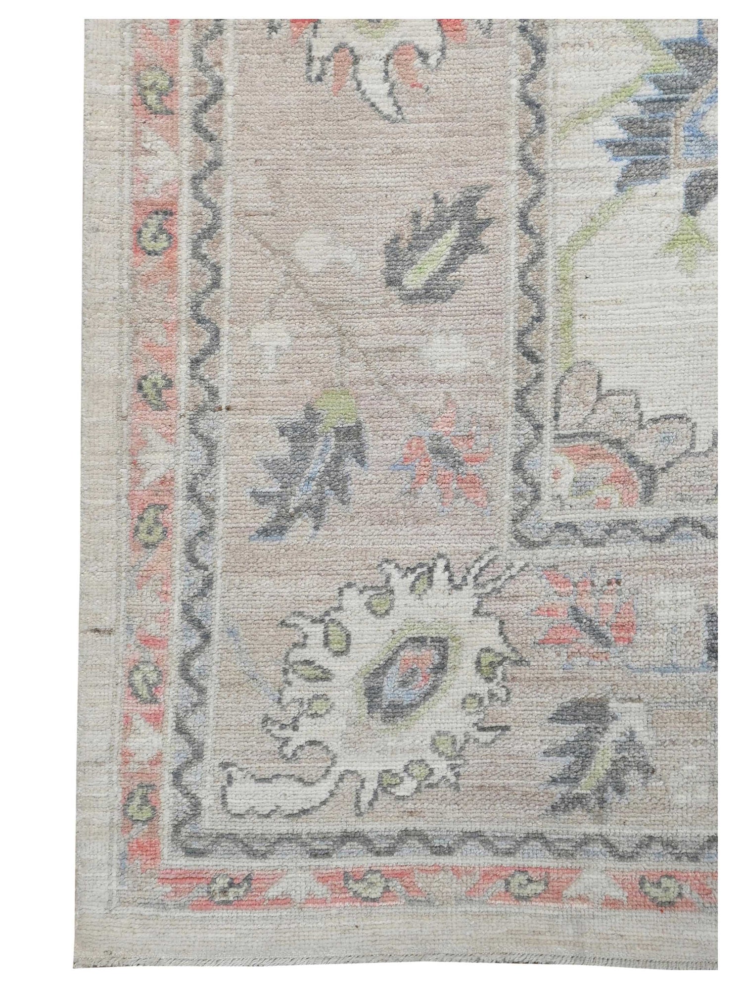 Pacific Ushak Wool Weft 43651 Ivory Beige Transitional Hand Knotted Rug