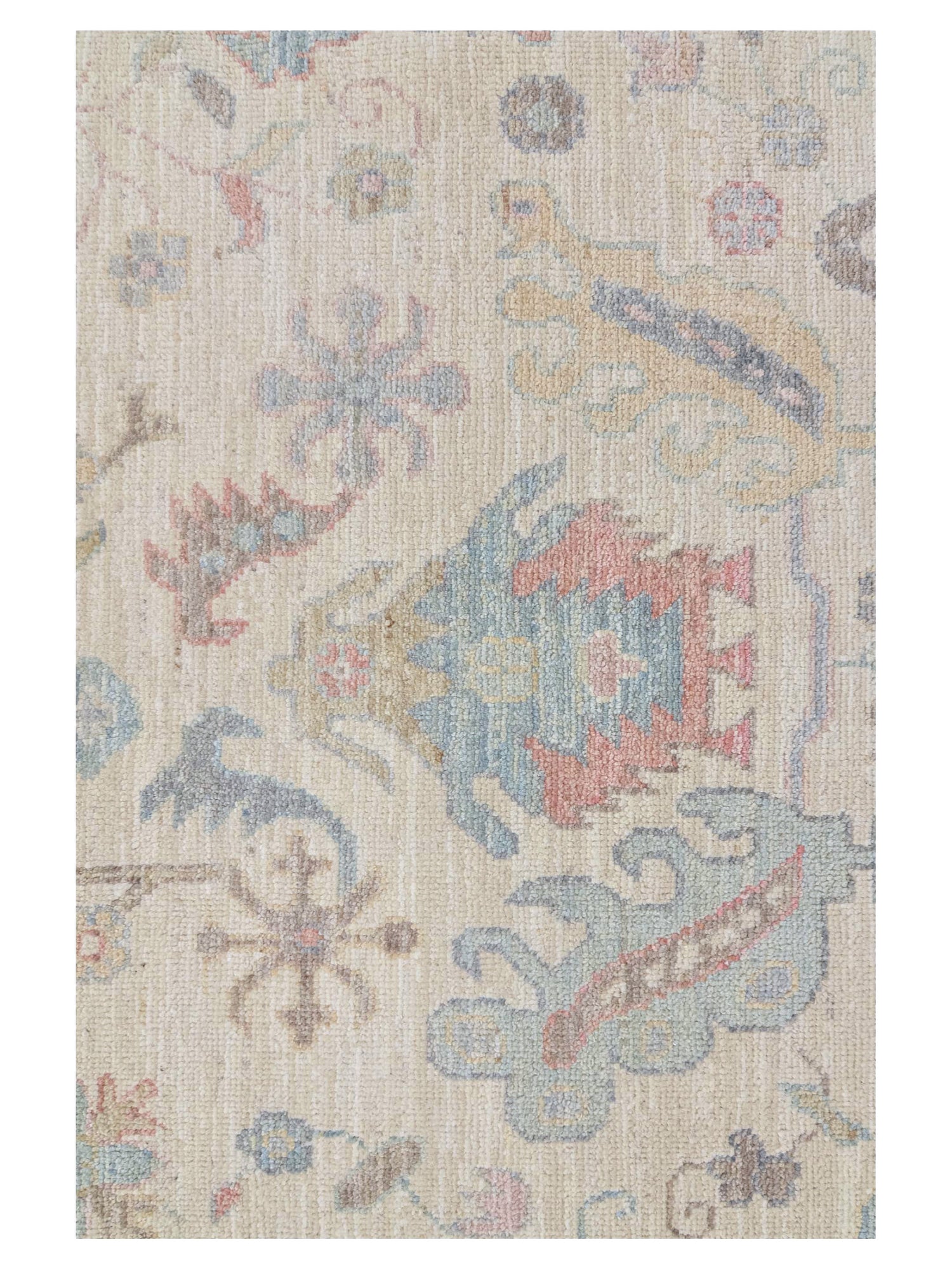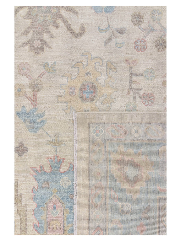 Pacific Ushak Wool Weft 43733 Ivory Beige Transitional Hand Knotted Rug