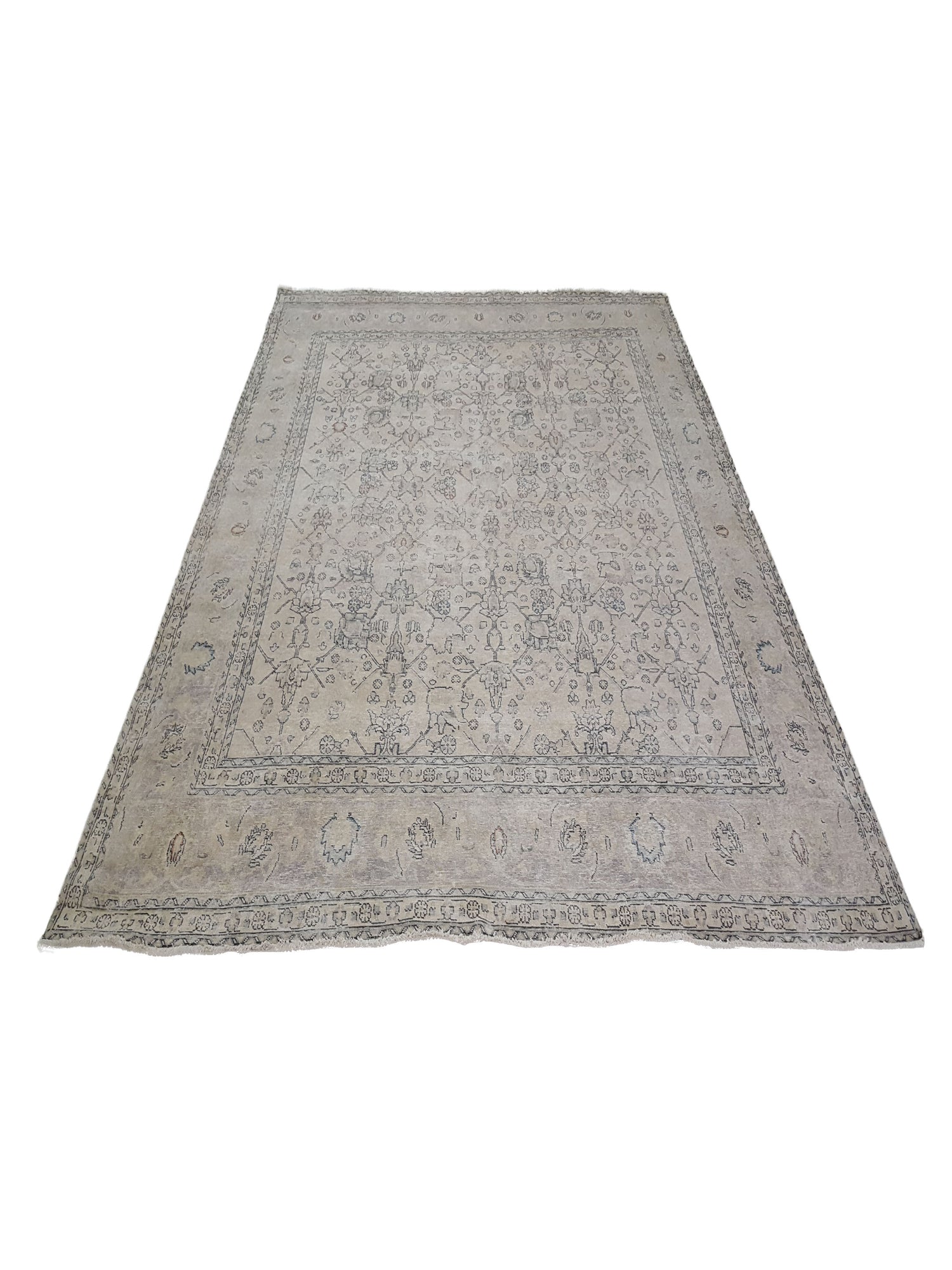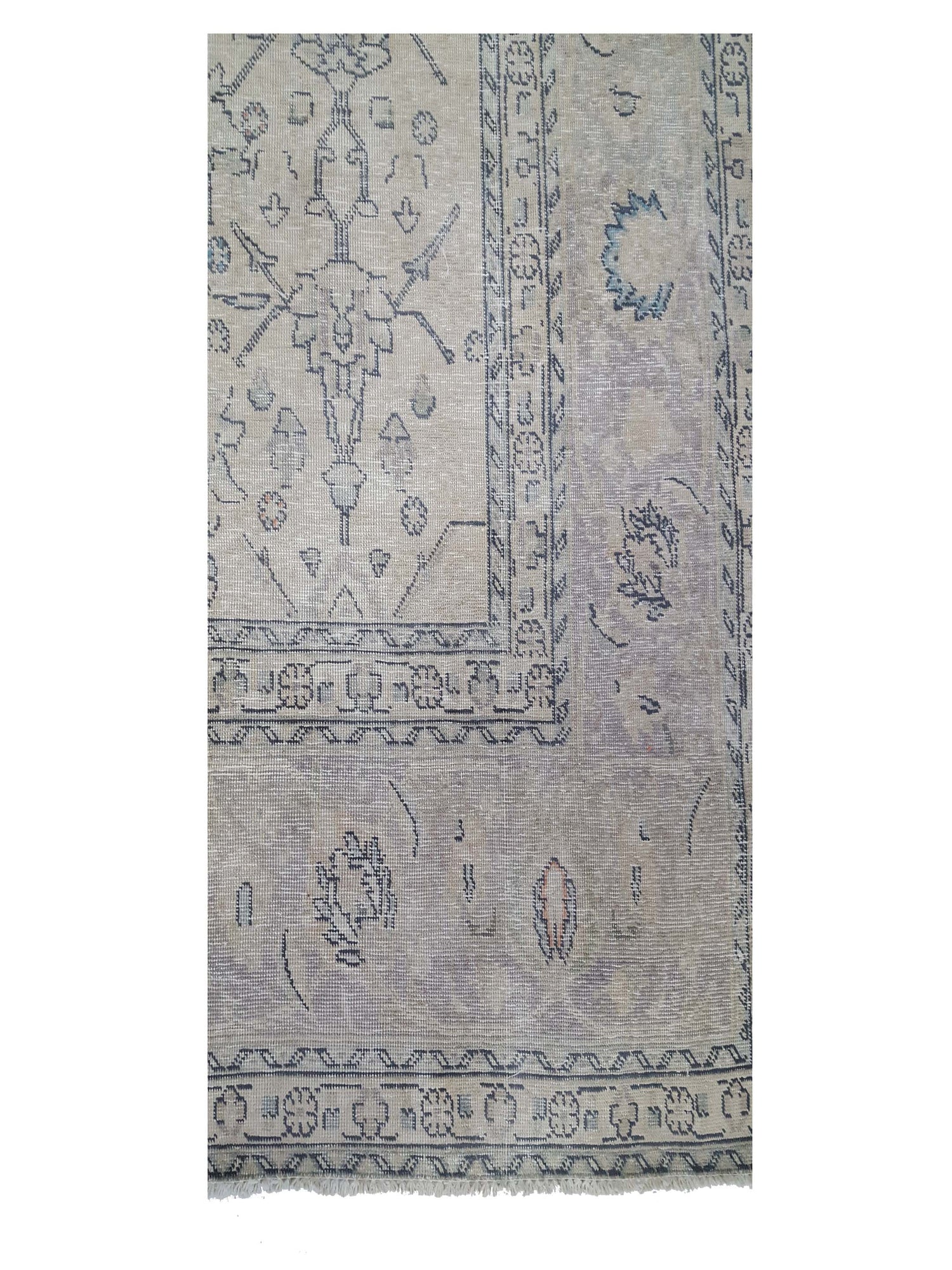 Our vintage Persian rugs were Hand knotted in Persia during the Art Deco period with vibrant colours and classic designs, these fine rugs have been up cycled, using sustainable design methods to give texture, and toned down the colours and create a modern look that will complement any transitional space. Our richly textured rugs offer a sense of harmony and refinement, while retaining the classic elegance of Persian carpets.