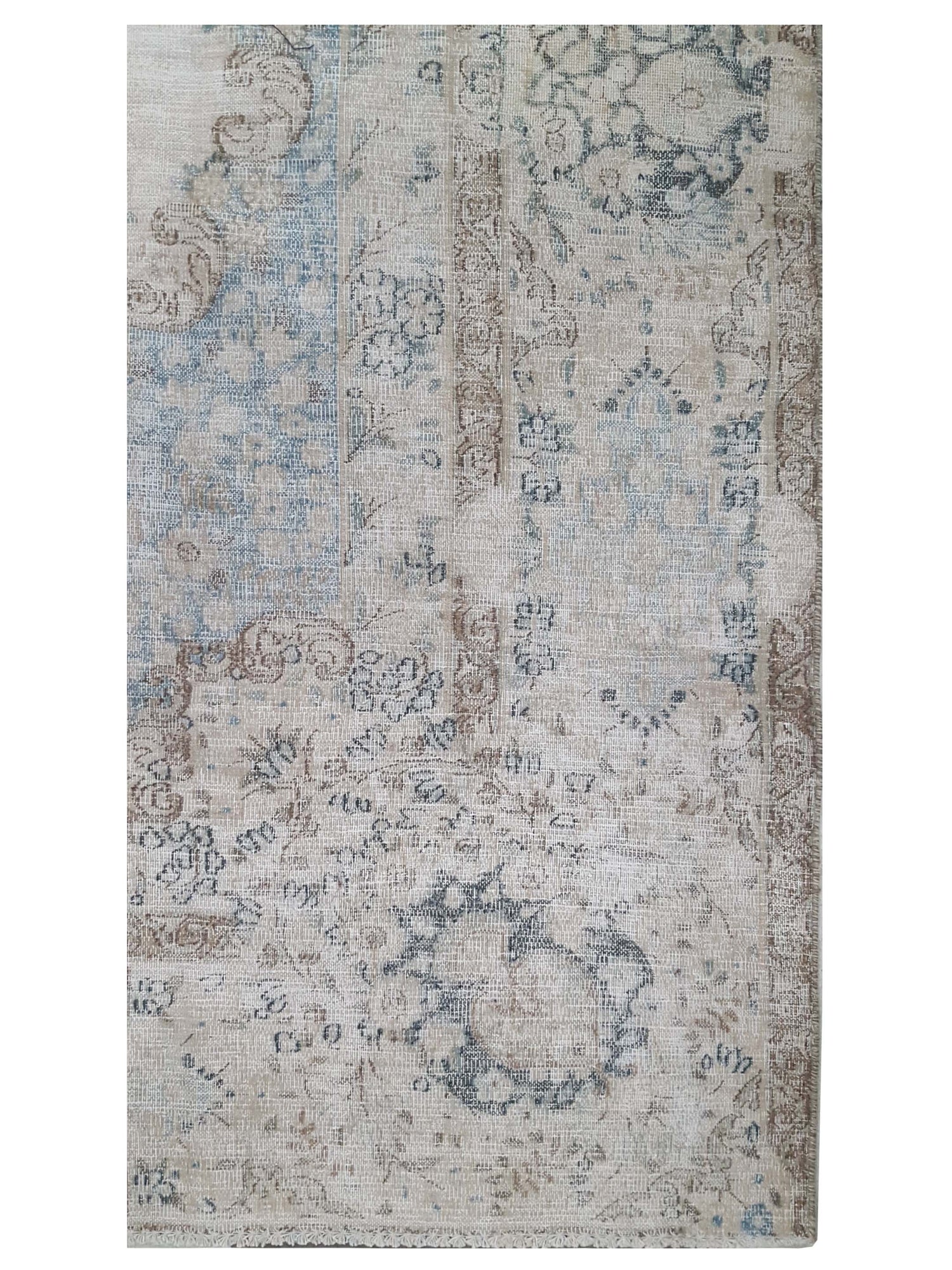 Our vintage Persian rugs were Hand knotted in Persia during the Art Deco period with vibrant colours and classic designs, these fine rugs have been up cycled, using sustainable design methods to give texture, and toned down the colours and create a modern look that will complement any transitional space. Our richly textured rugs offer a sense of harmony and refinement, while retaining the classic elegance of Persian carpets.