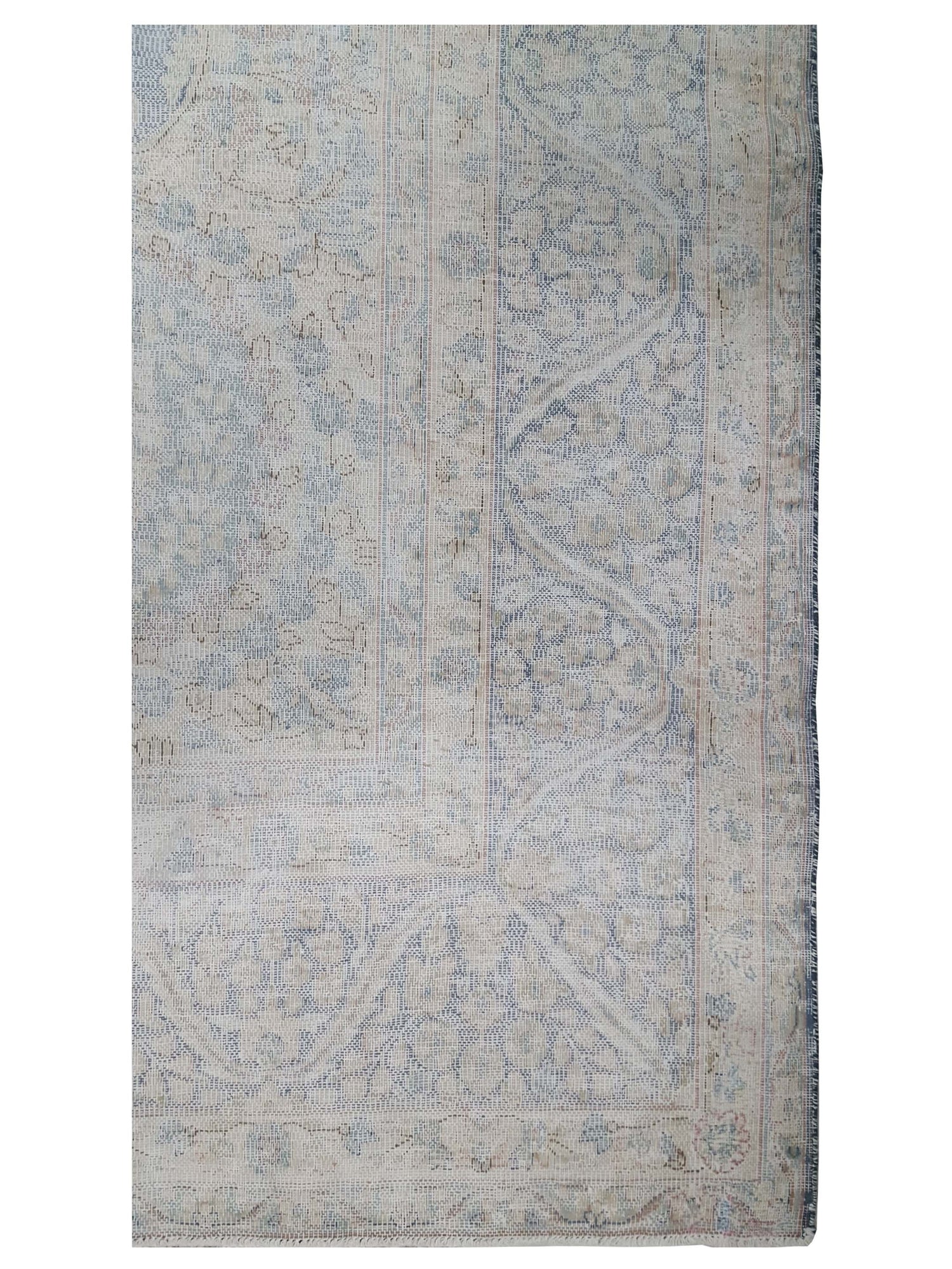 Our vintage Persian rugs were Hand knotted in Persia during the Art Deco period with vibrant colours and classic designs, these fine rugs have been up cycled, using sustainable design methods to give texture, and toned down the colours and create a modern look that will complement any transitional space. Our richly textured rugs offer a sense of harmony and refinement, while retaining the classic elegance of Persian carpets.